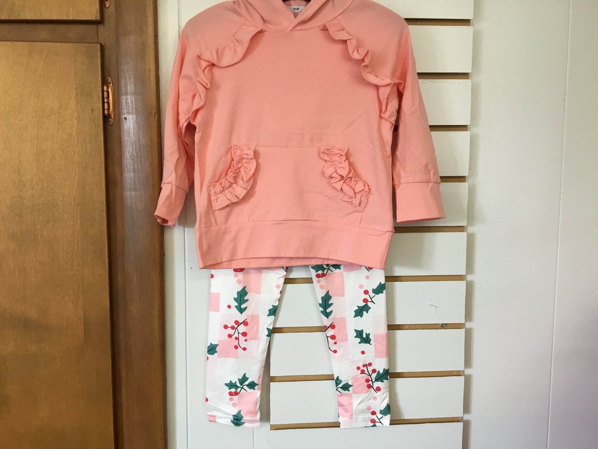 Blush Ruffle Hoodie & Holly Check Pant Set