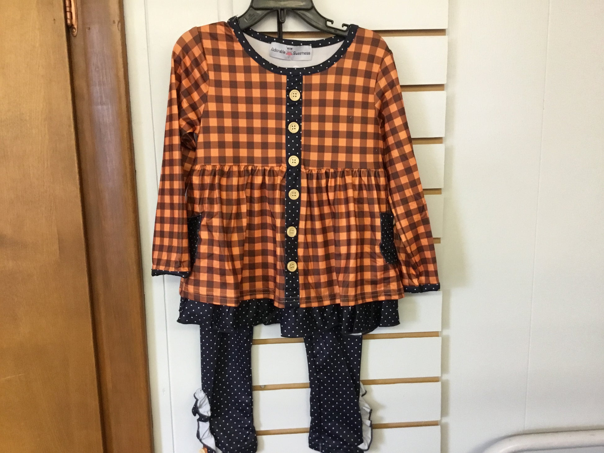 Navy & Rust Gingham Check Button Pocket Pant Set